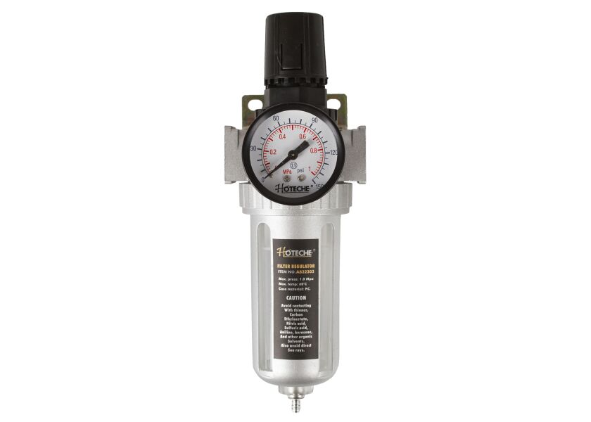 Regulátor tlaku vzduchu s odlučovačem vody pro pneumatické nářadí.