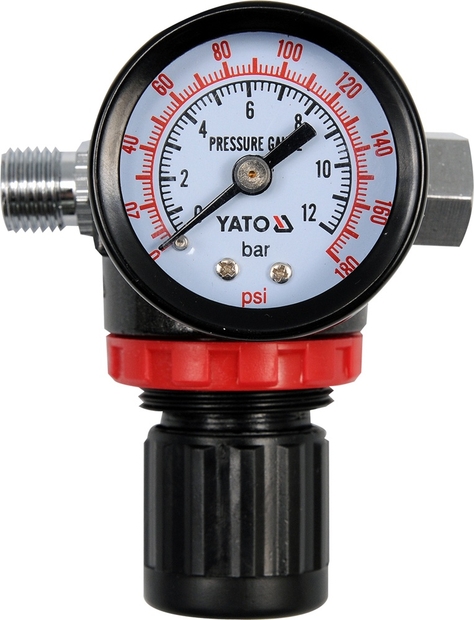 Regulátor tlaku vzduchu Yato YT-2381 s rozsahem regulace 0 - 10,2 bar.
